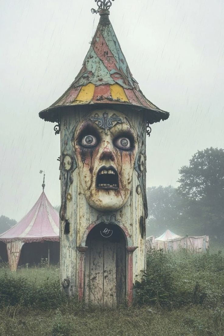 We entered the house through what I supposed was the back. We walked up two levels of wooden winding steps. That night was so dry I was sweating by the time we got to the top. I glanced back to watch each car rock. There was no wind. Dad pulled me by my hand into the home. We entered a carnival, with so many clowns.